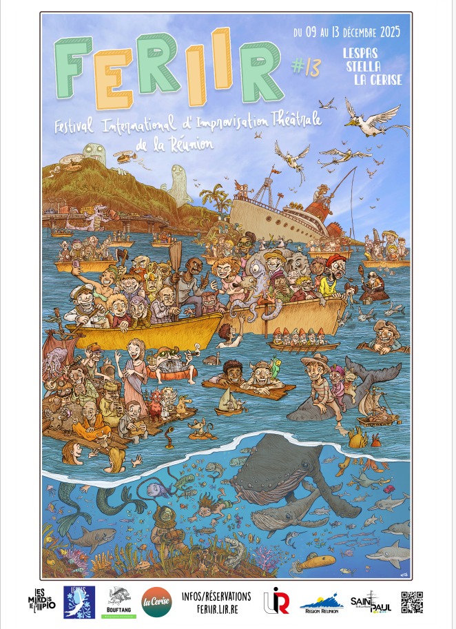 Le FERIIR, festival international d’improvisation théâtrale de La Réunion, organisé chaque année depuis 2012 par la Ligue d’improvisation réunionnaise (LIR) revient pour une 13ème édition qui promet encore de beaux moments !