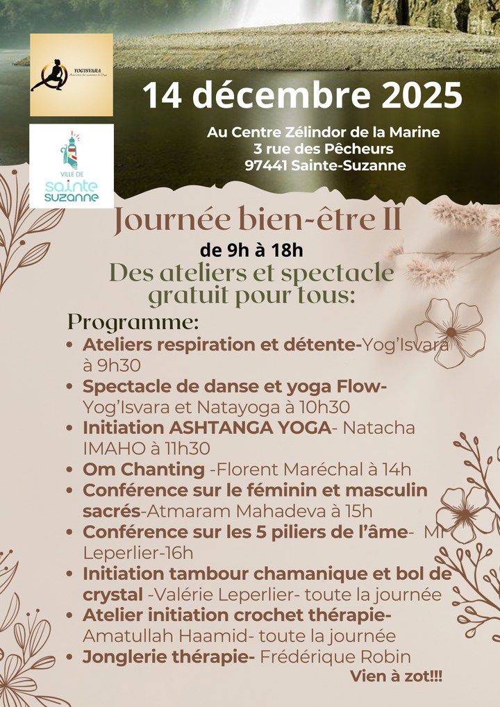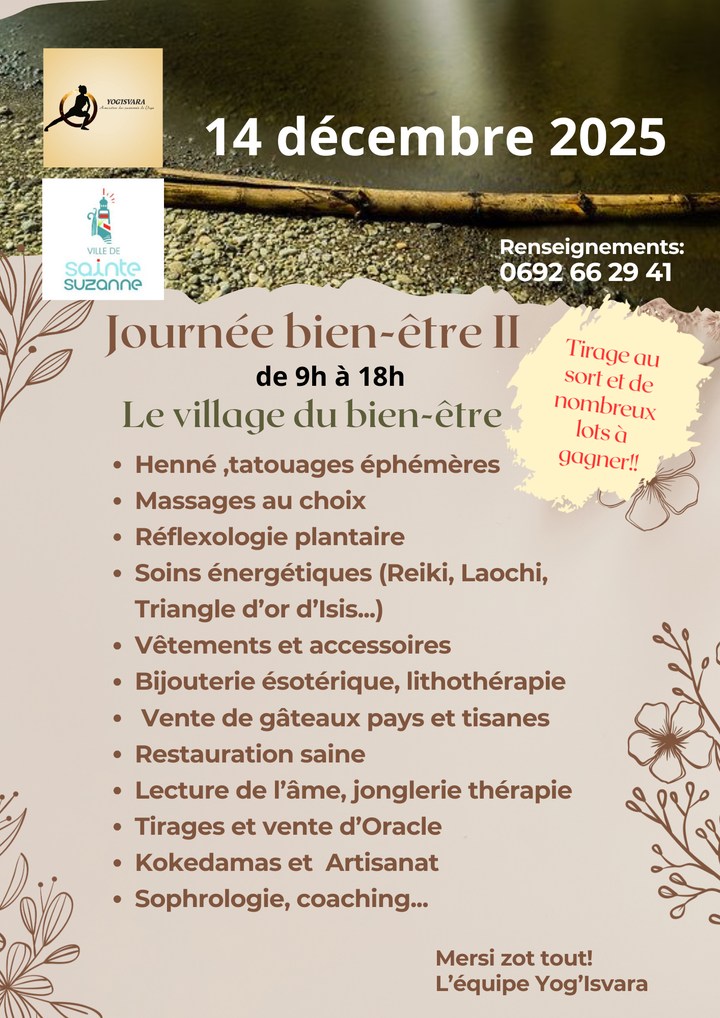Venez vivre une journée dédiée à la détente, à l’harmonie et au bien-être ce dimanche 14 décembre de 9h à 18h. Au programme : ateliers, spectacles, conférences, village bien-être, massages, soins énergétiques, artisanat, et bien plus encore !