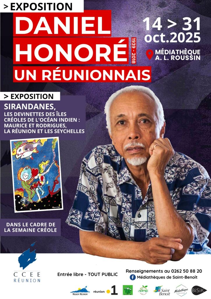 • Daniel Honoré, un Réunionnais : Entrez dans la vie passionnante de Daniel Honoré, « zarboutan nout kiltir » : écrivain, conteur, militant, sportif, homme de radio et grand défenseur du créole. Réalisée par Pascal Saint-Pierre et Nicolas Bonin, cette exposition, à travers 20 panneaux, photos, documents inédits et anecdotes, rend hommage à un homme engagé, ouvert et profondément ancré dans l’âme réunionnaise.