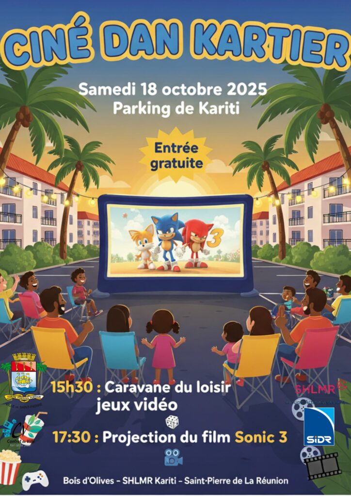 L’association Alon fé bougé a le plaisir de vous inviter à un moment convivial autour du cinéma dans votre quartier samedi 18 octobre à partir de 15h à Bois d’Olives sur le parking de la SHLMR (Derrière la cyberbase). L’entrée est gratuite.