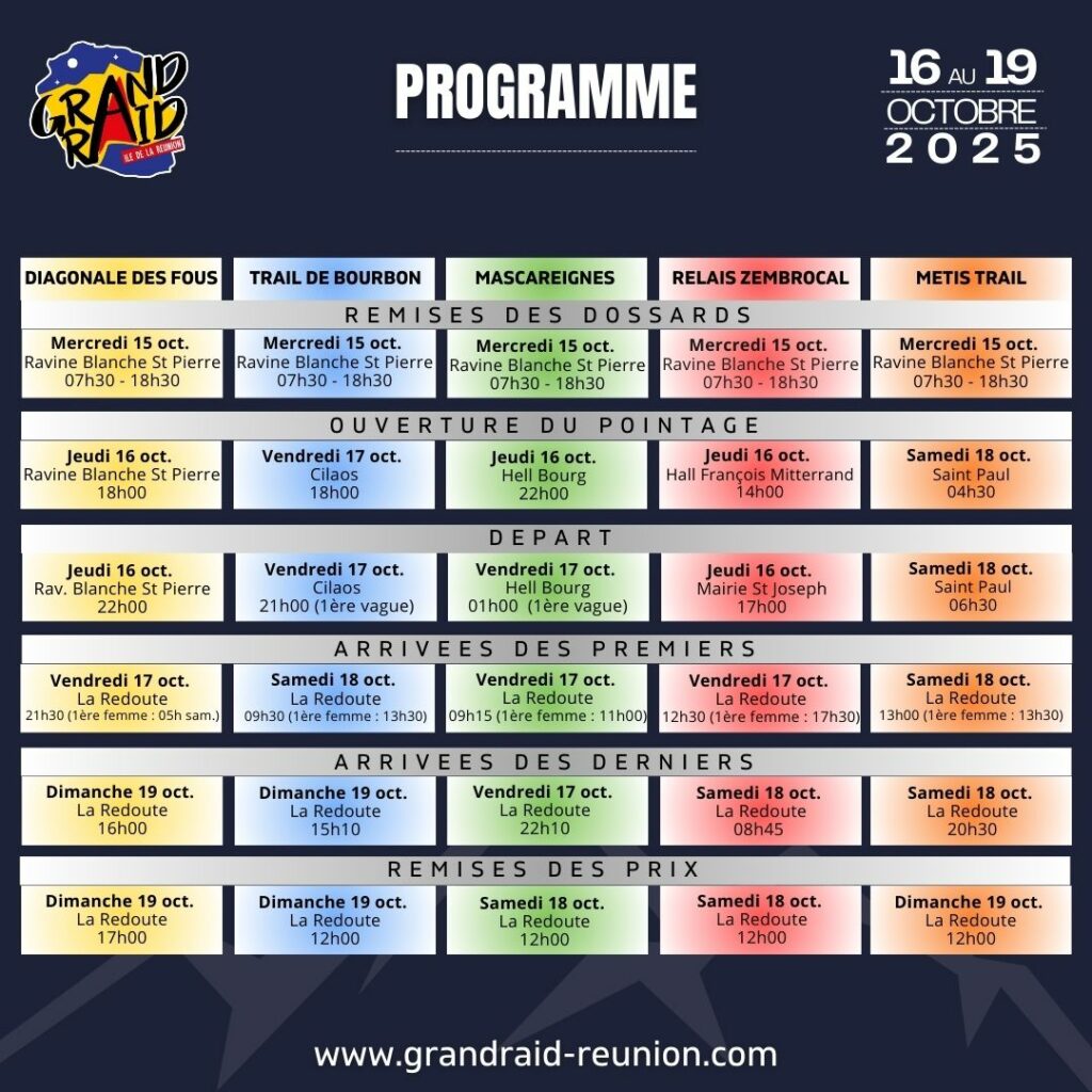 L’édition 2025 du Grand Raid se tiendra du 16 au 19 octobre. Découvrez tout le programme :