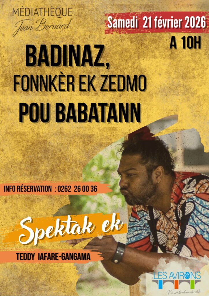 Dans le cadre de la Journée internationale de la langue maternelle, la médiathèque Jean Bernard aux Avirons vous propose un spectacle pour petits et grands à la découverte de la langue créole et de sa richesse. Au programme : musique, poésie et jeux de mots…