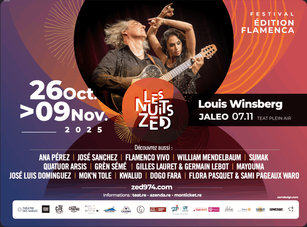 Dans le cadre des nuits zed, des concerts et spectacles vivants seront donnés sur huit lieux entre Saint-Denis et l’Etang-Salé du jusqu’au 9 novembre. Conférences, exposition et projection de film sont aussi au programme de ce festival dédié au flamenco dans toute sa diversité. Tout le programme à retrouver sur : zed974.com/programme