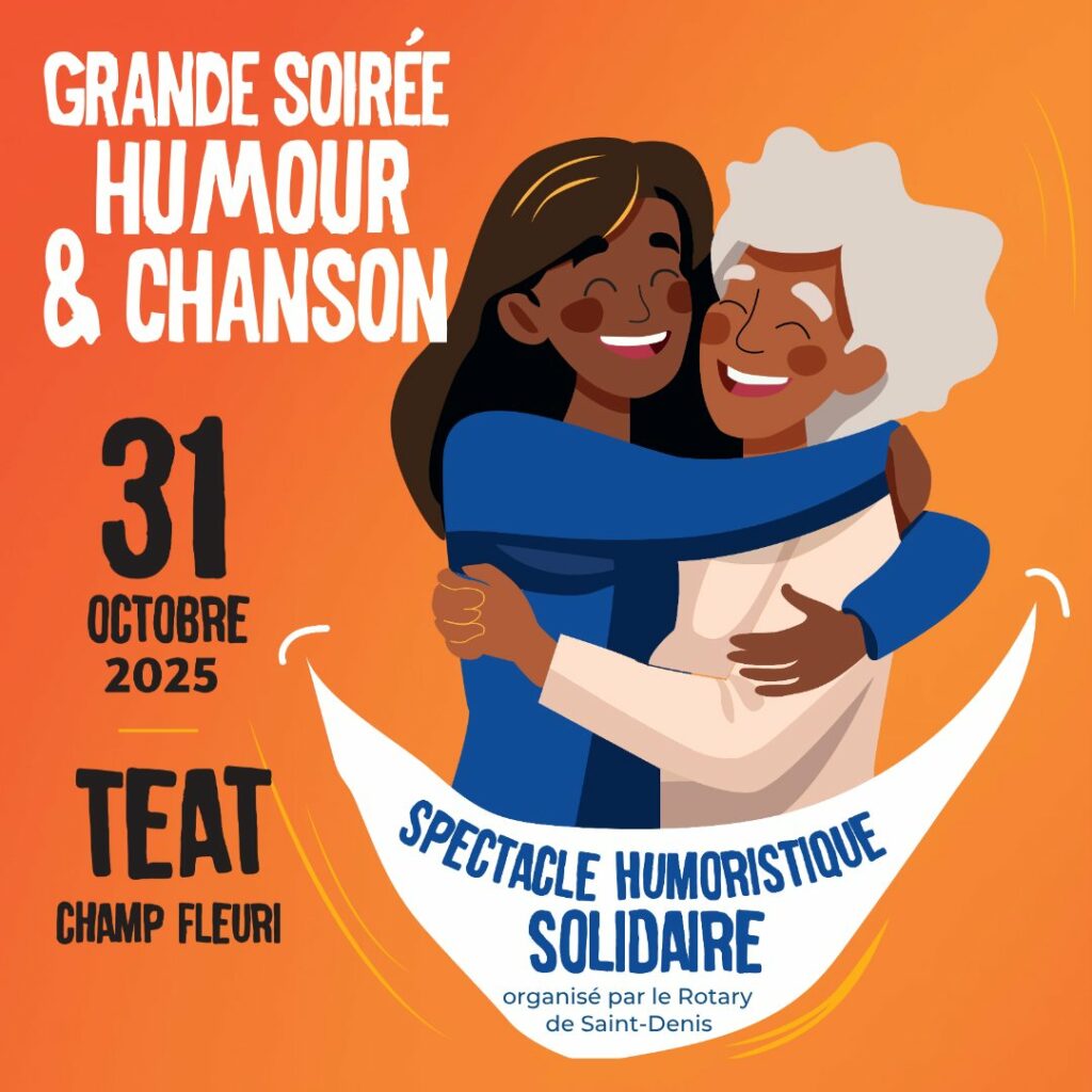A l’initiative du Rotary Club de Saint-Denis, Le vendredi 31 octobre, au Théâtre de Champs-Fleuri , les humoristes Thierry JARDINOT, Marie-Alice Sinaman, Vincent Roca, Emma Nonna et Anabelle Feri vous proposent un spectacle inédit!