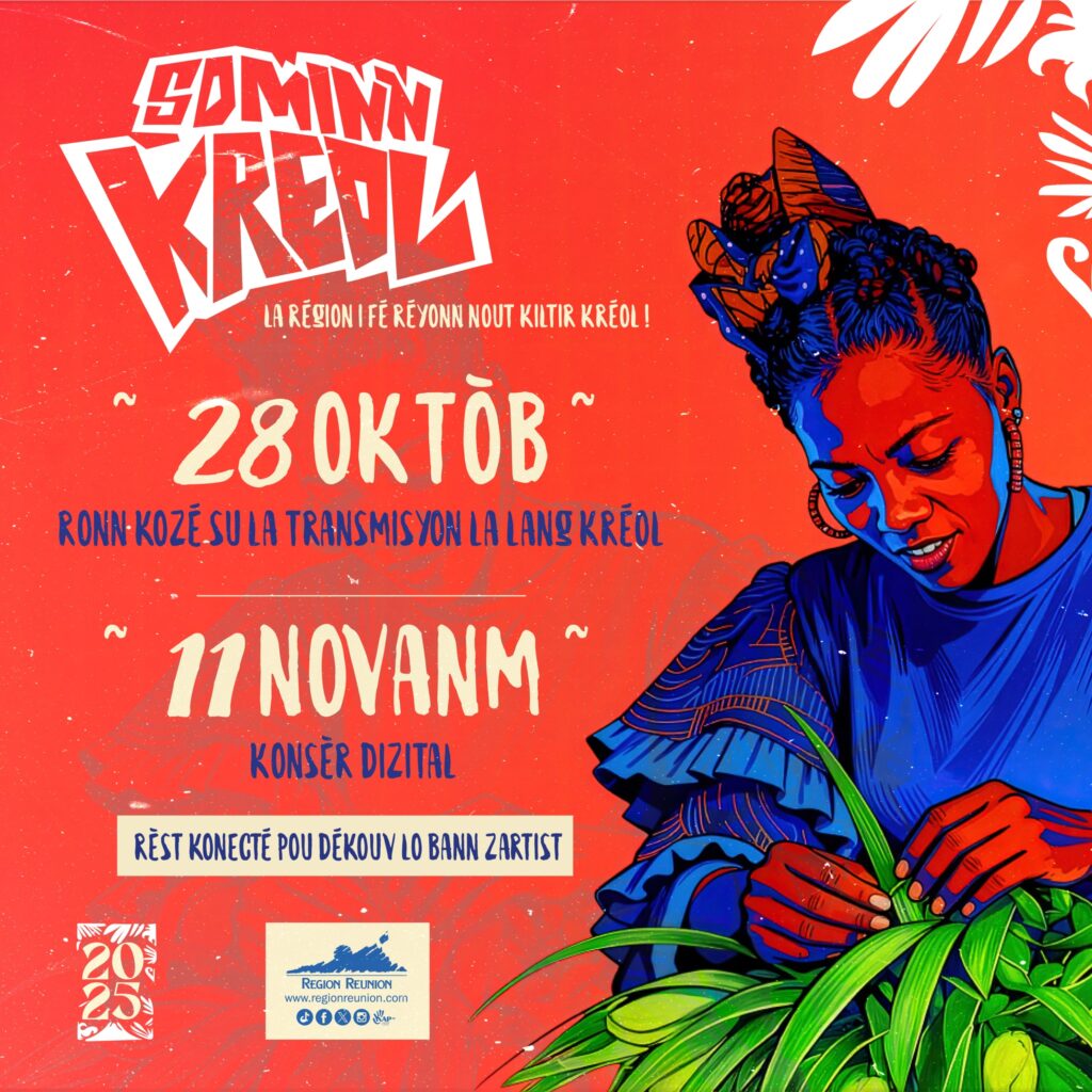 La Région Réunion vous invite à une immersion dans l’âme de La Réunion dans le cadre de la Sominn Kréol, avec le 28 octobre 2025 in ronn kozé su la transmisyon la lang kréol. Ce festival culturel mettant à l’honneur la richesse et la diversité de la culture réunionnaise à travers des activités telles que des concerts, des échanges, et des ateliers. Nous publions ci-dessous le post de la Région Réunion.