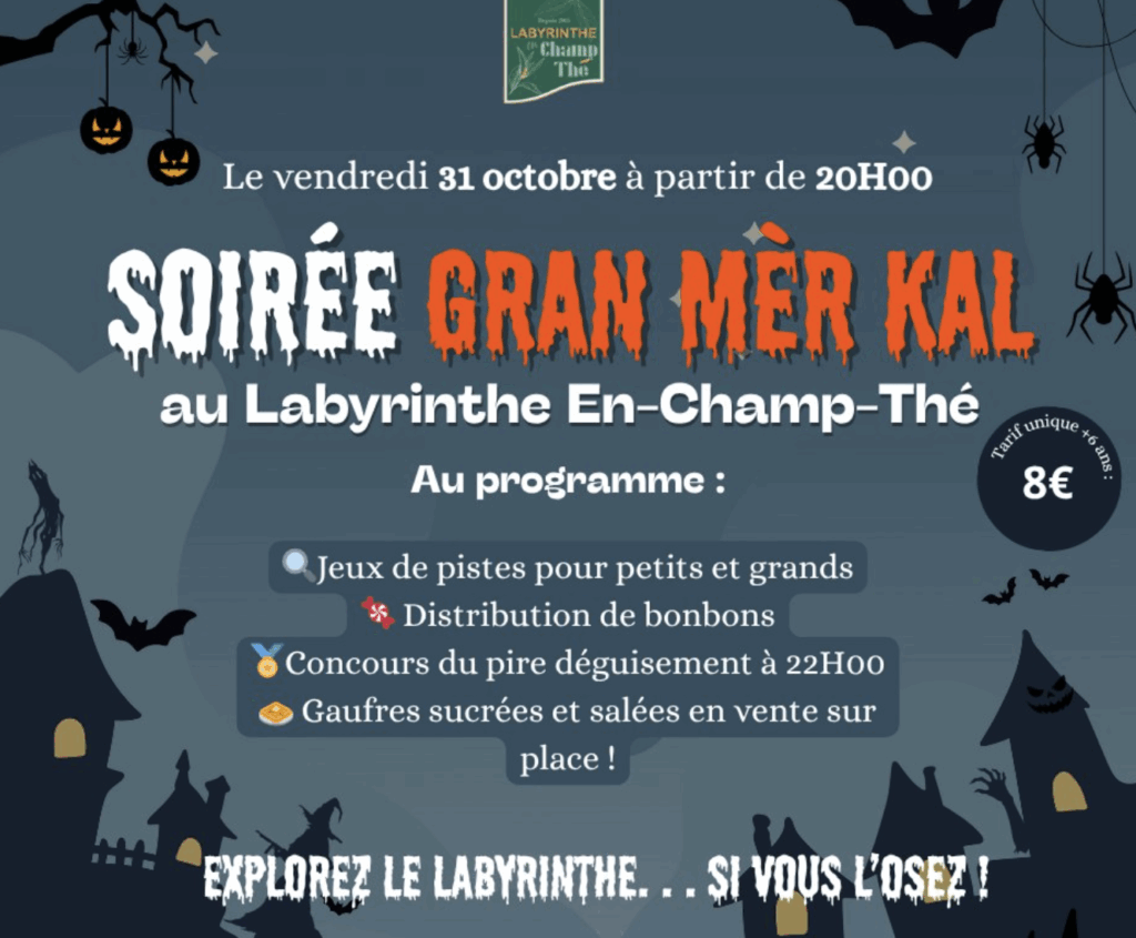 Le Vendredi 31 octobre, dès 20h00, le Labyrinthe En-Champ-Thé vous ouvre ses portes pour la SOIRÉE GRAN MÈR KAL !