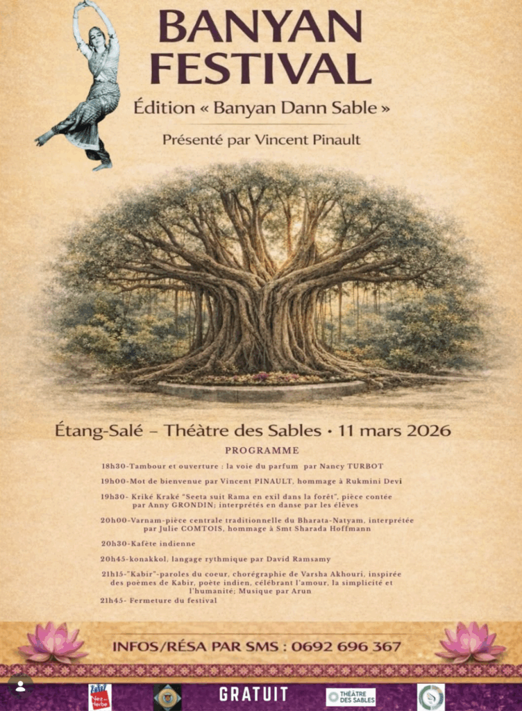 Mercredi 11 mars, profitez d’une soirée de conte créole, bharata natyam, rythmes, célébrant un héritage vivant au Théâtre les Sables.