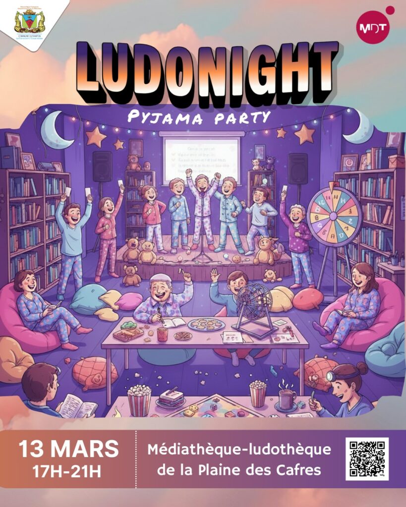 Envie d’une soirée qui sort de l’ordinaire pour les vacances ? Rendez-vous à la médiathèque-ludothèque de la Plaine des Cafres le vendredi 13 mars de 17h à 21h pour la première Ludonight de l’année, qui aura des airs de « pyjama party » géante ! À l’occasion de la Journée mondiale du pyjama, vous êtes en effet invités à revêtir votre vêtement de nuit le plus stylé ou le plus fun, et pourquoi pas repartir avec un lot.